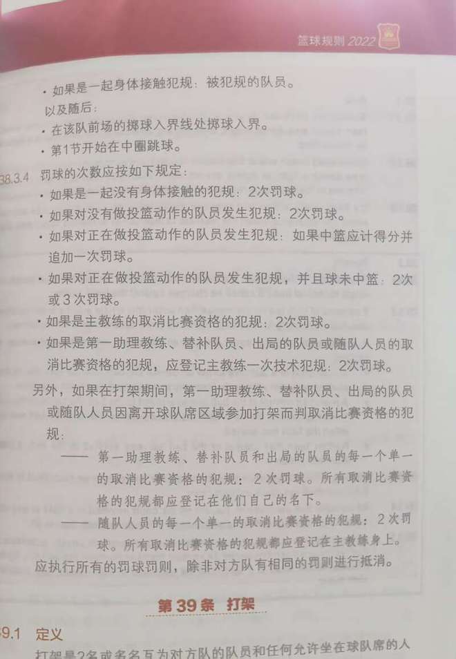 篮球规则明确指出主教练被取消比赛资格的判罚。中青报·中青网记者杨屾摄